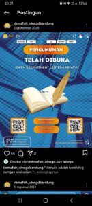 Bandung, [15/06/2025] – Di tengah tantangan akademik yang dihadapi mahasiswa, khususnya di Fakultas Adab dan Humaniora, muncul sebuah program unggulan yang secara perlahan tapi pasti mengubah cara pandang mahasiswa terhadap karya tulis ilmiah: Lentera Priayi. Program yang digagas oleh Dewan Eksekutif Mahasiswa (DEMA) ini tak hanya sekadar agenda rutin, melainkan telah menjadi ruang pertumbuhan ilmiah bagi para calon sarjana.