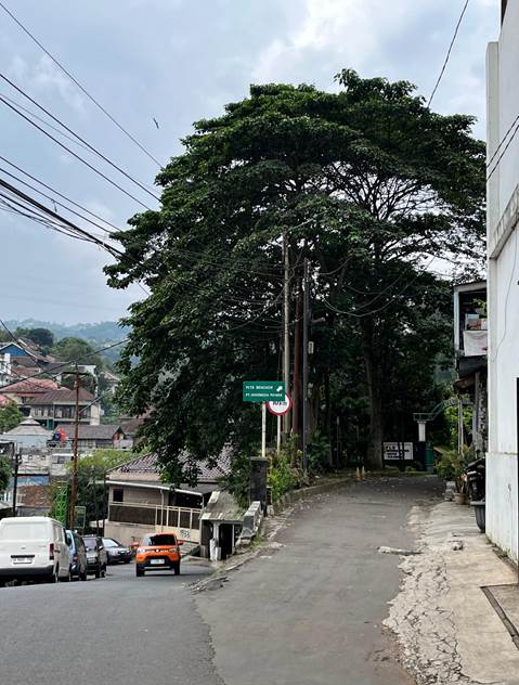 Di ujung jalan, berdiri papan hijau dengan tulisan: “Peta Bengkok PT Indonesia Power 1.0 km”. Papan itu sederhana, tapi menyimpan ironi. Di balik jalur ini, energi untuk sebagian Bandung sedang diproduksi. Tapi ironisnya, energi kehidupan pohon, udara bersih, tanah yang tenang justru terasa lebih nyata di sini daripada di pusat kota yang penuh listrik namun kekurangan napas.